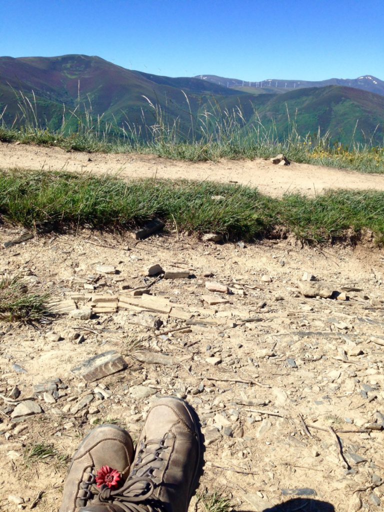 Ich bin zum Cruz de Ferro gelaufen. Es ist ein absolut symbolträchtiger Punkt. Es ist ein 5 m höher Eichenstamm auf dessen Spitze ein Eisenkreuz thront.