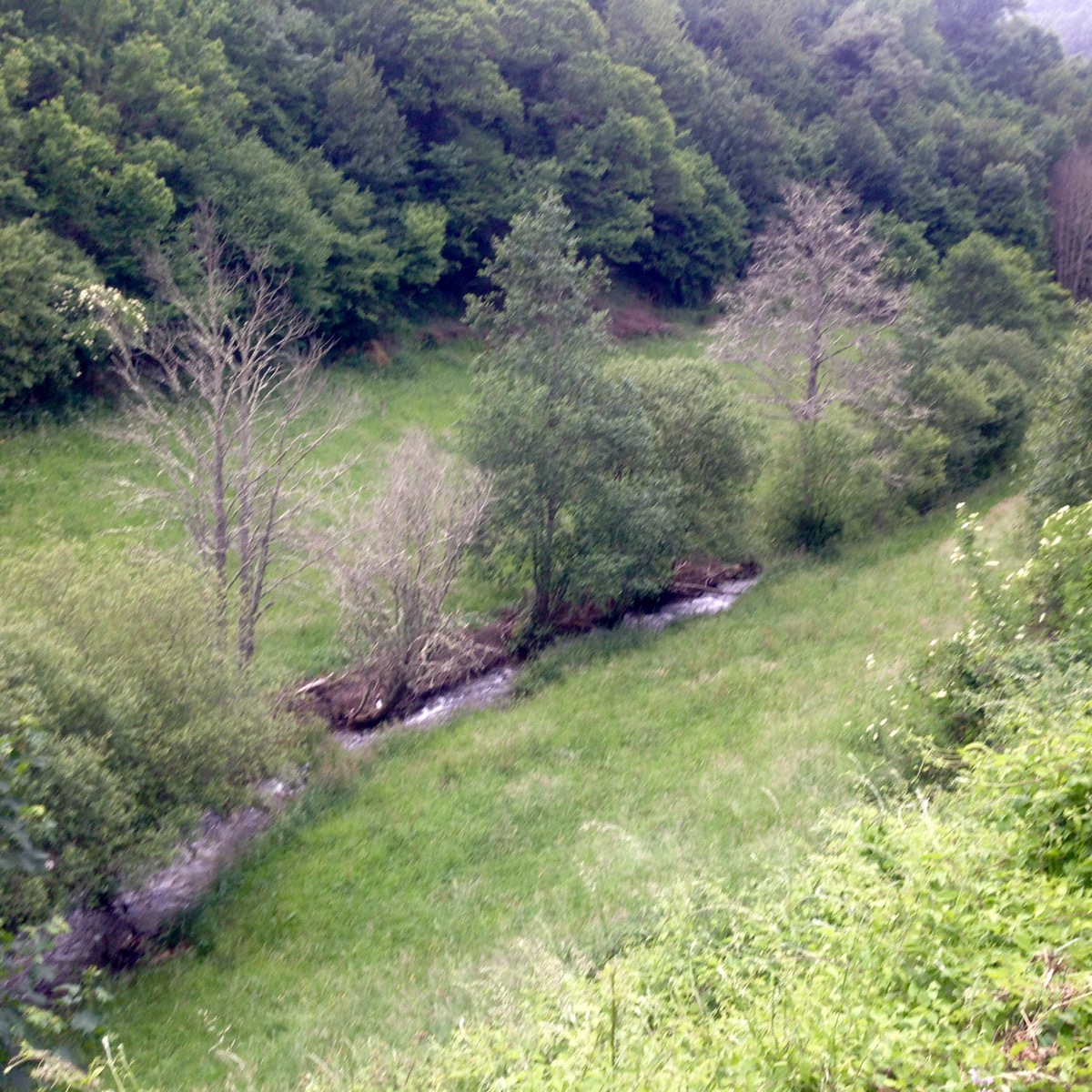 Der Weg führte die ganze Zeit an einem Bach entlang und akustisch war das auf jeden Fall ein Highlight. Das Geräusch wie auch der Geruch erinnerten mich sehr an das Haus meines Vaters in Schweden. Das Wetter ist heute bedeckt und mit 16 grad recht frisch. Zwischendurch nieselt es, wird aber wohl noch zum Abend heftiger. Auf dem Weg gibt es schon einiges zu entdecken ?
