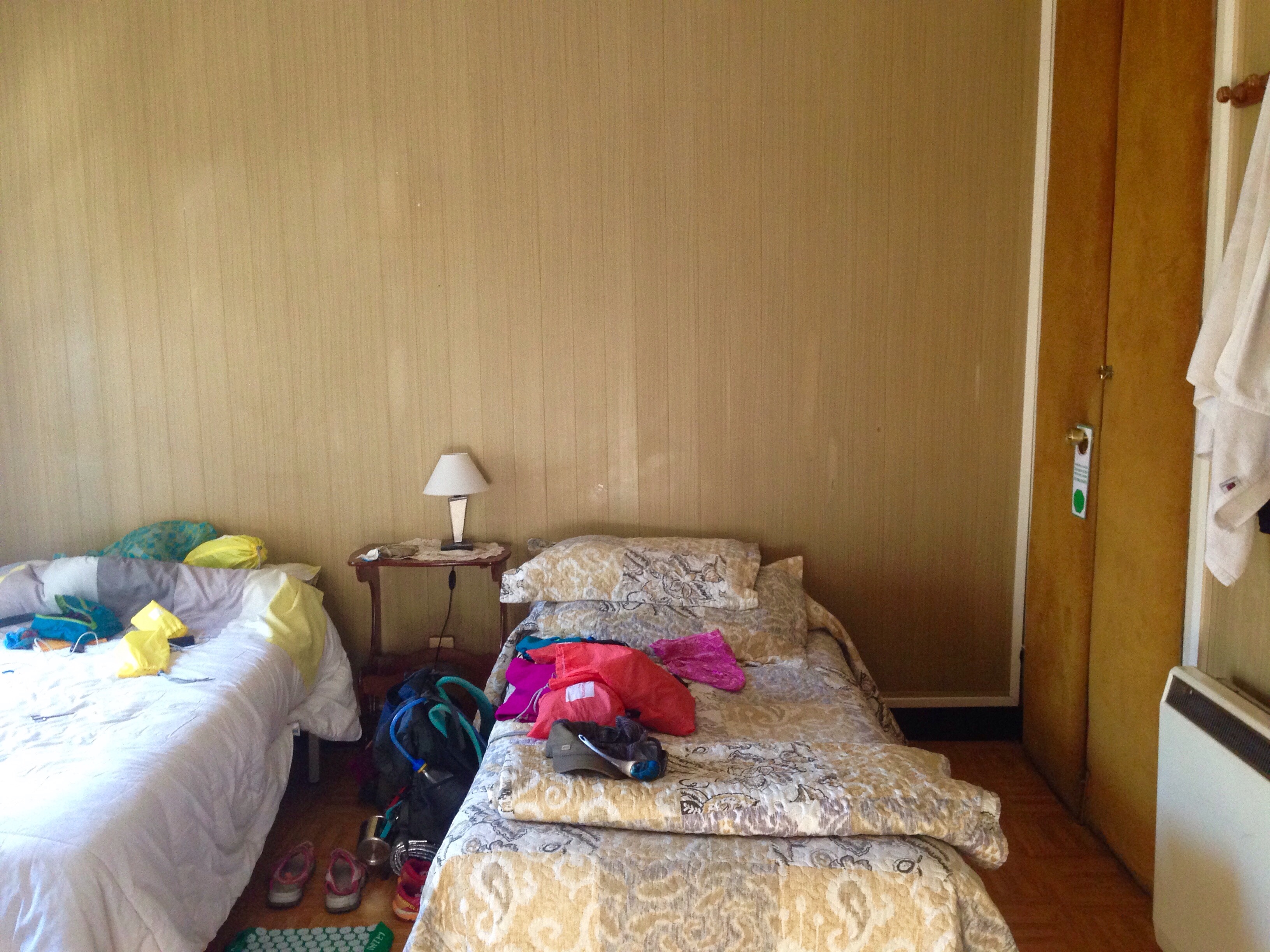 Durch die Tür, die nur halb auf ging, kamen wir mit Rucksack nicht durch. Es ging nur eins nach dem anderen.
