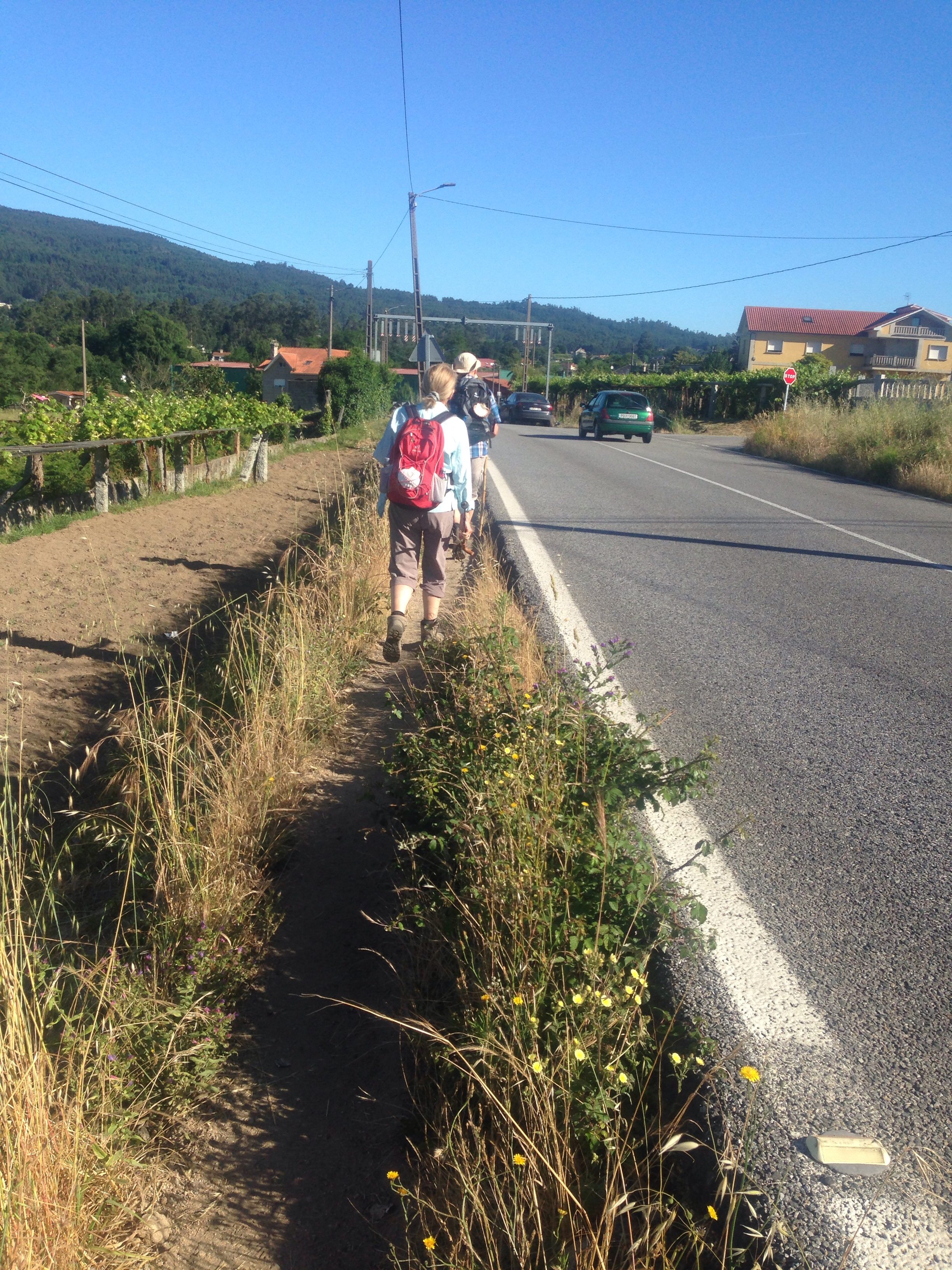 Als wir dort saßen, sind wir zwei Pärchen aus Singapur begegnet. Sie wandern, fahren Bus oder Zug und sind auch auf dem Weg nach Santiago. Das habe ich zumindest verstanden. 😄 Solche Unterhaltungen finden meist in englisch statt. Oder besser Denglisch 😂 Am besten kann ich mit denen reden, die auch nicht so gut englisch sprechen. Wir verstehen uns mit Händen und Füßen. Überhaupt ist das witzig mit dem Verstehen. Gestern haben wir zwei Spanier unabhängig voneinander getroffen, und sie haben uns einen Weg erklärt. Es ging darum, dass wir gestern zwischen zwei Wegen wählen konnten.