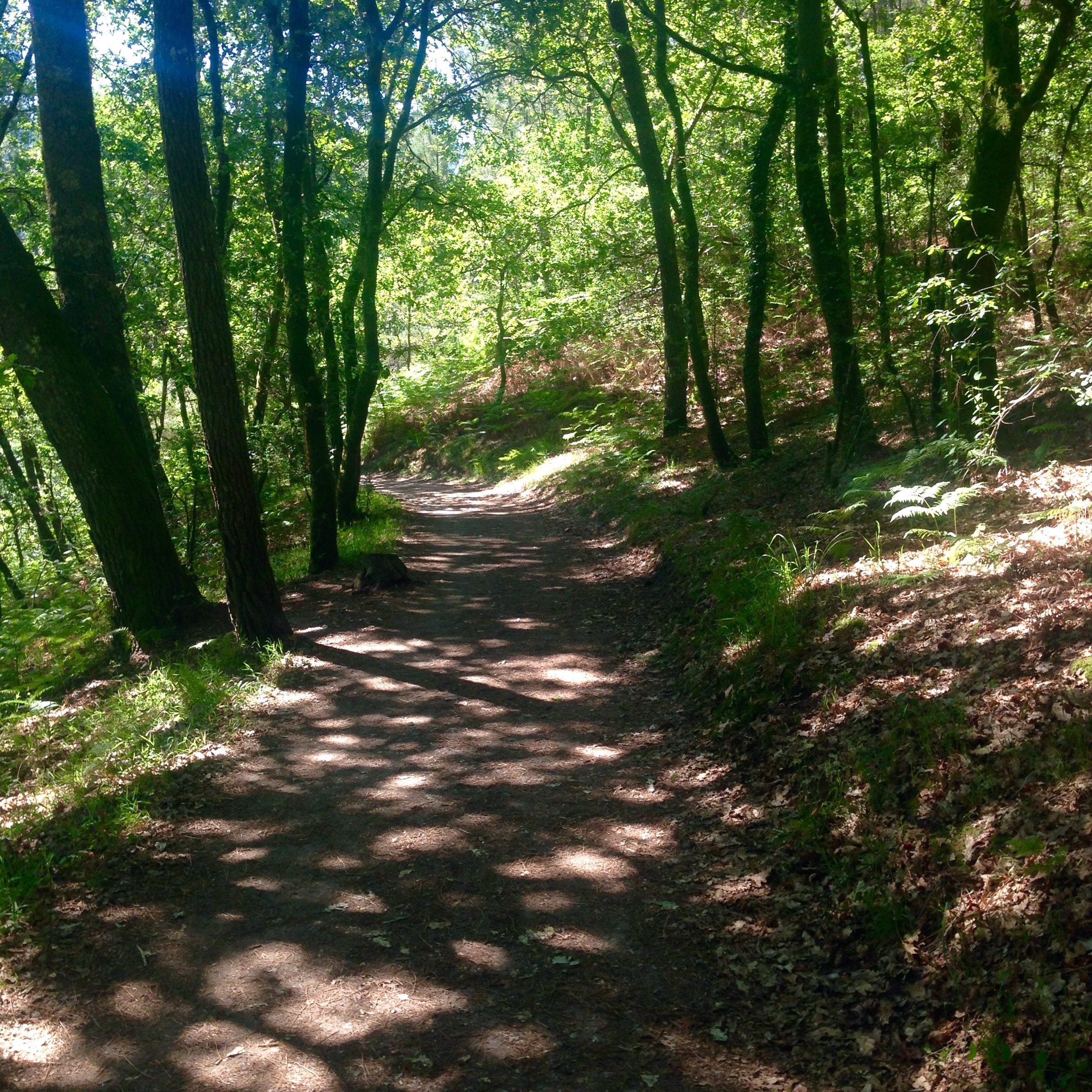 Wir sind relativ lange durch einen wunderschönen Wald gelaufen. Dort wuchsen ganz viele Eichen und Farn. Der Wald bildete regelrecht einen Tunnel. Die Atmosphäre war irgendwie sanft und friedlich. Es war ein bisschen, wie bei “ Herr der Ringe“. Die Hobbits, die zunächst ganz unschuldig, ohne jede Bedrohung in dieser zauberhaften Natur lebten. So fühlte ich mich. Ganz frei von Angst, so dass ich alles genießen konnte. Keine wilden Tiere, keine Wegelagerer oder Orks. Nur Schmetterlinge, Eidechsen, Vögel und Pilger. Selbstverständlich ist das nicht! Da gab es bestimmt in der Vergangenheit auch andere Zeiten.Dieser Weg ist ja schön sehr sehr alt. Ich kann mir nicht vorstellen, dass es damals so ungefährlich war, ihn zu gehen.