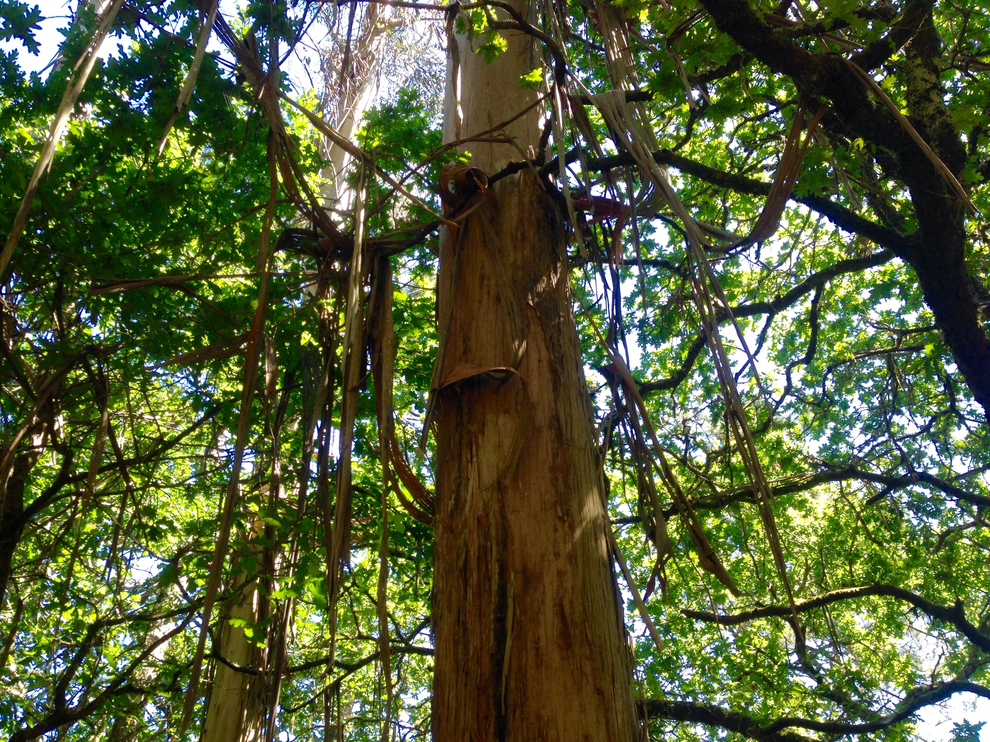 Habe ich dir schon von meiner Begeisterung erzählt, was die Eukalyptusbäume angeht? Dieser Geruch, diese Ausstrahlung? Ok, ich habe schon. Aber was ich dir noch nicht erzählt habe, ist ihre ganz besondere Begabung. Das ist nämlich so: Ganz oft habe ich die Filmmusik von 9 1/2 Wochen im Kopf. Ich meine diese sexy Szene, wo Kim Basinger auf diesem Stuhl sich so nett rekelt. Kennst du die? Ok, ich schweife ab. Also, zurück zu den Eukalyptusbäumen. Sie lassen ihre Rinde in Streifen fallen und machen sich regelrecht nackig. Ich habe dann immer diese Melodie im Kopf. Es ist wie ein Striptease. Ich könnte mich jedes Mal beömmeln.